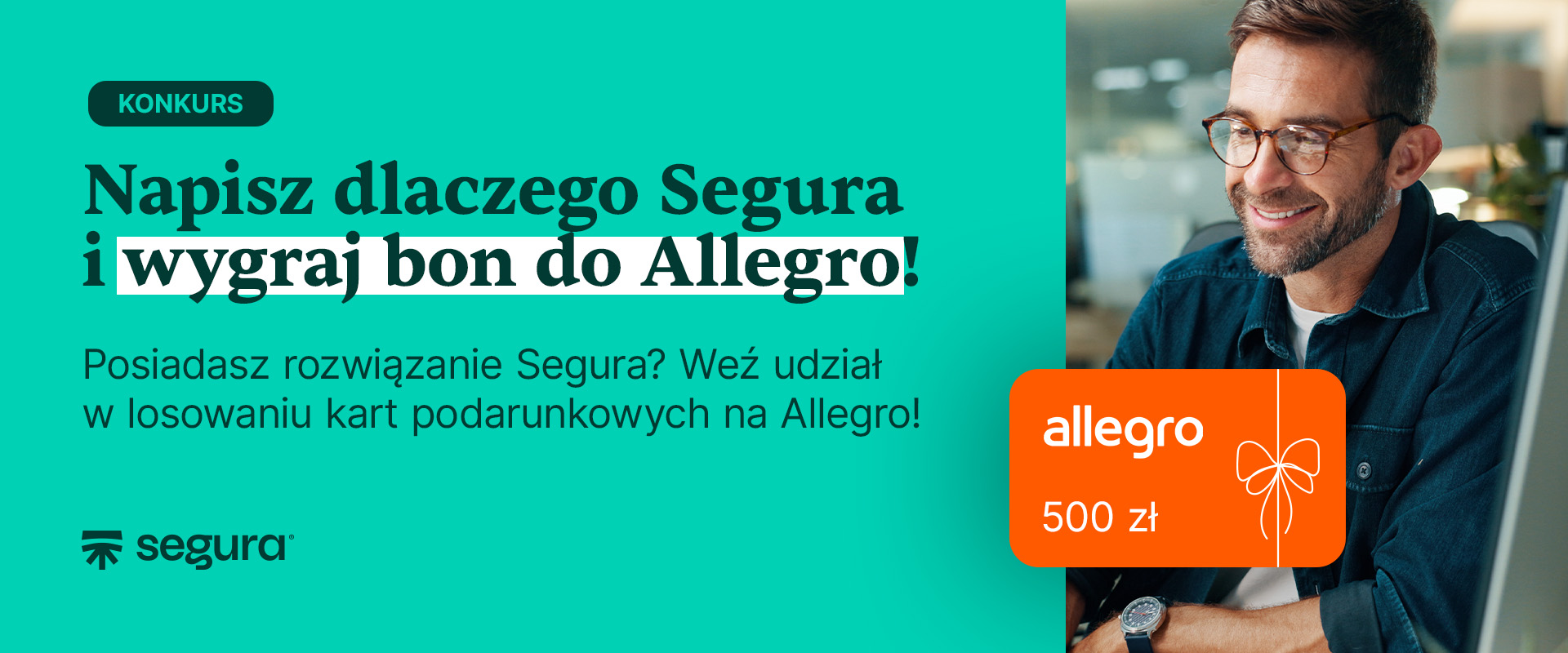 Wystarczy, że prześlesz swoją opinię o rozwiązaniu SEGURA za pomocą poniższego formularza i masz szansę wygrać kartę podarunkową na Allegro na kwotę 500 zł!